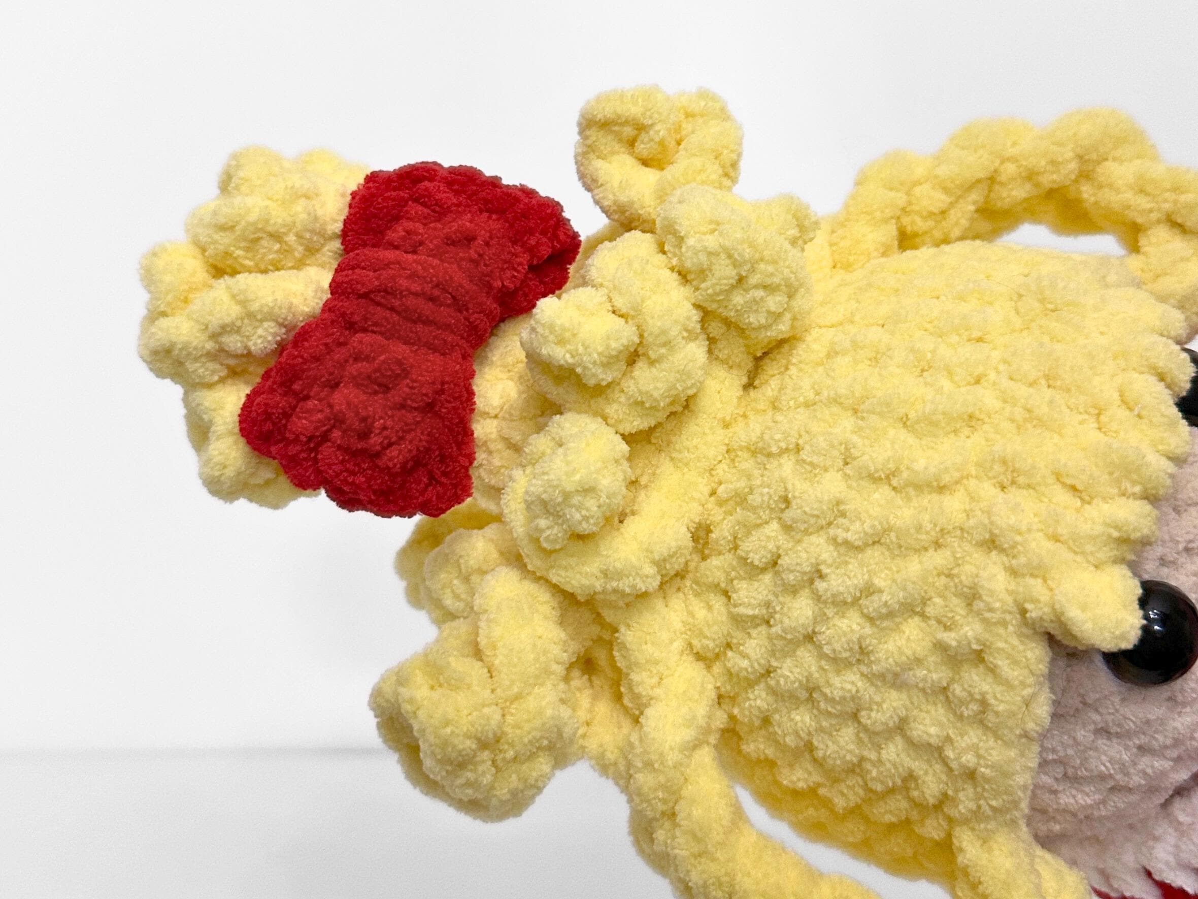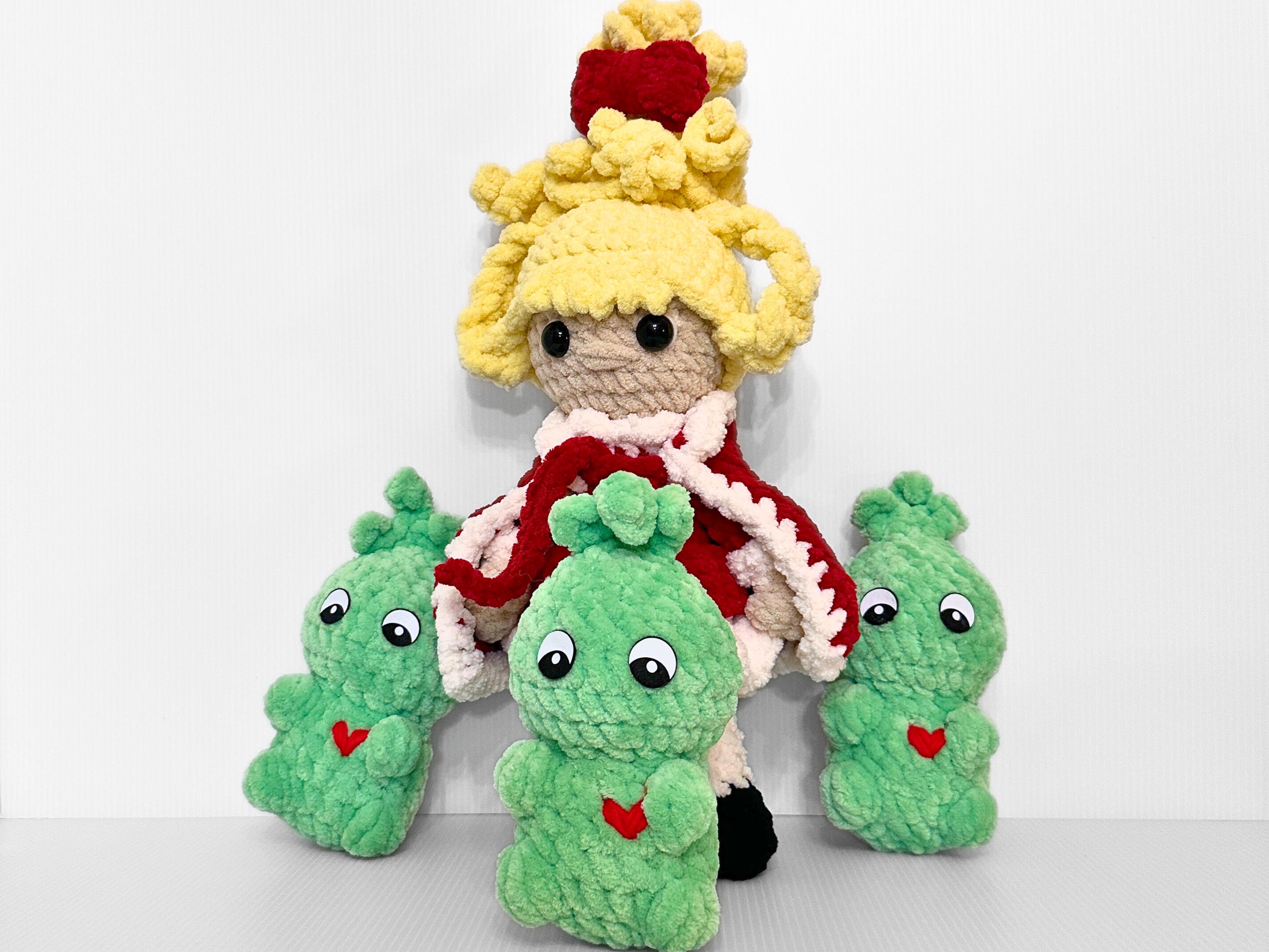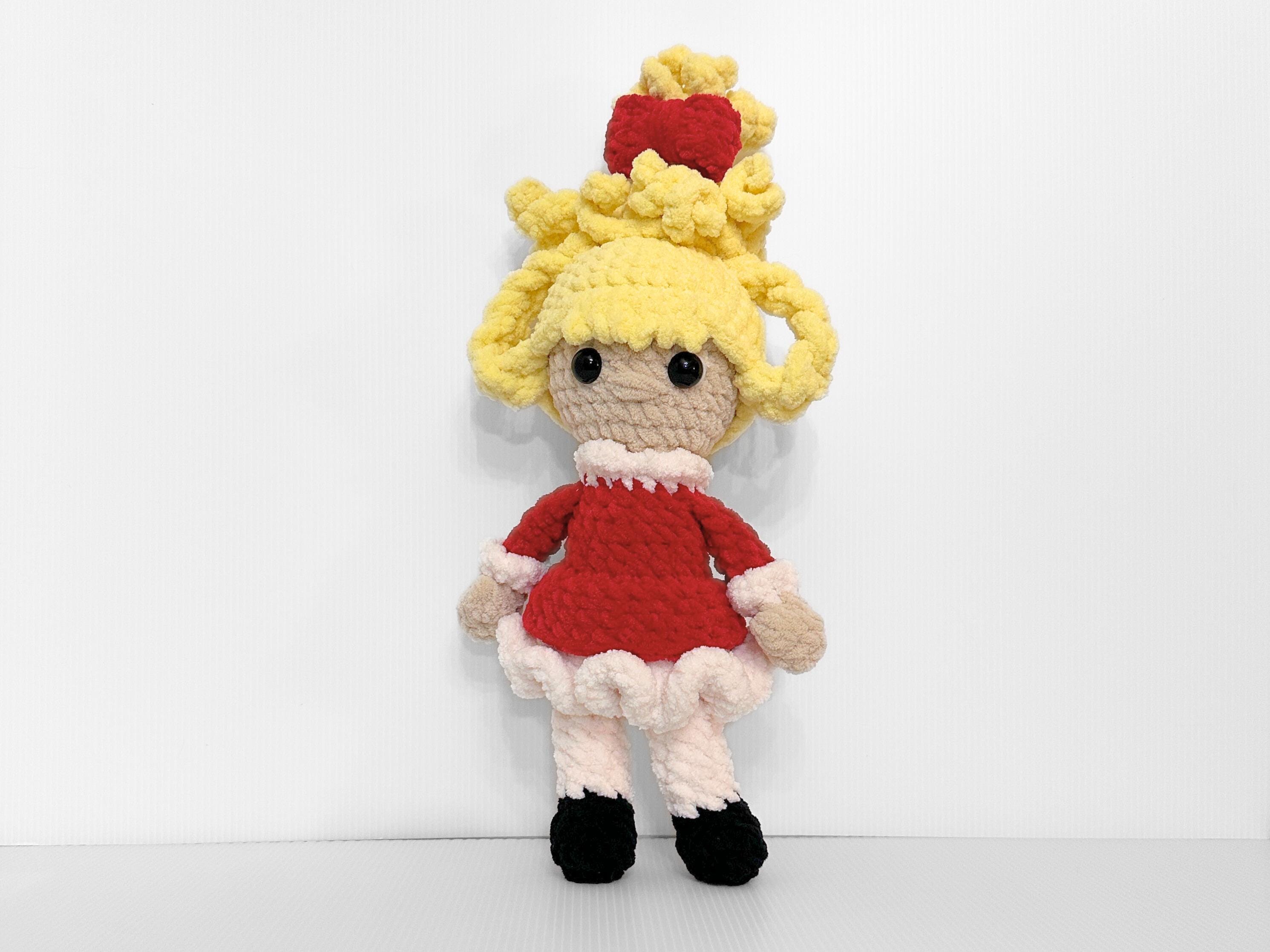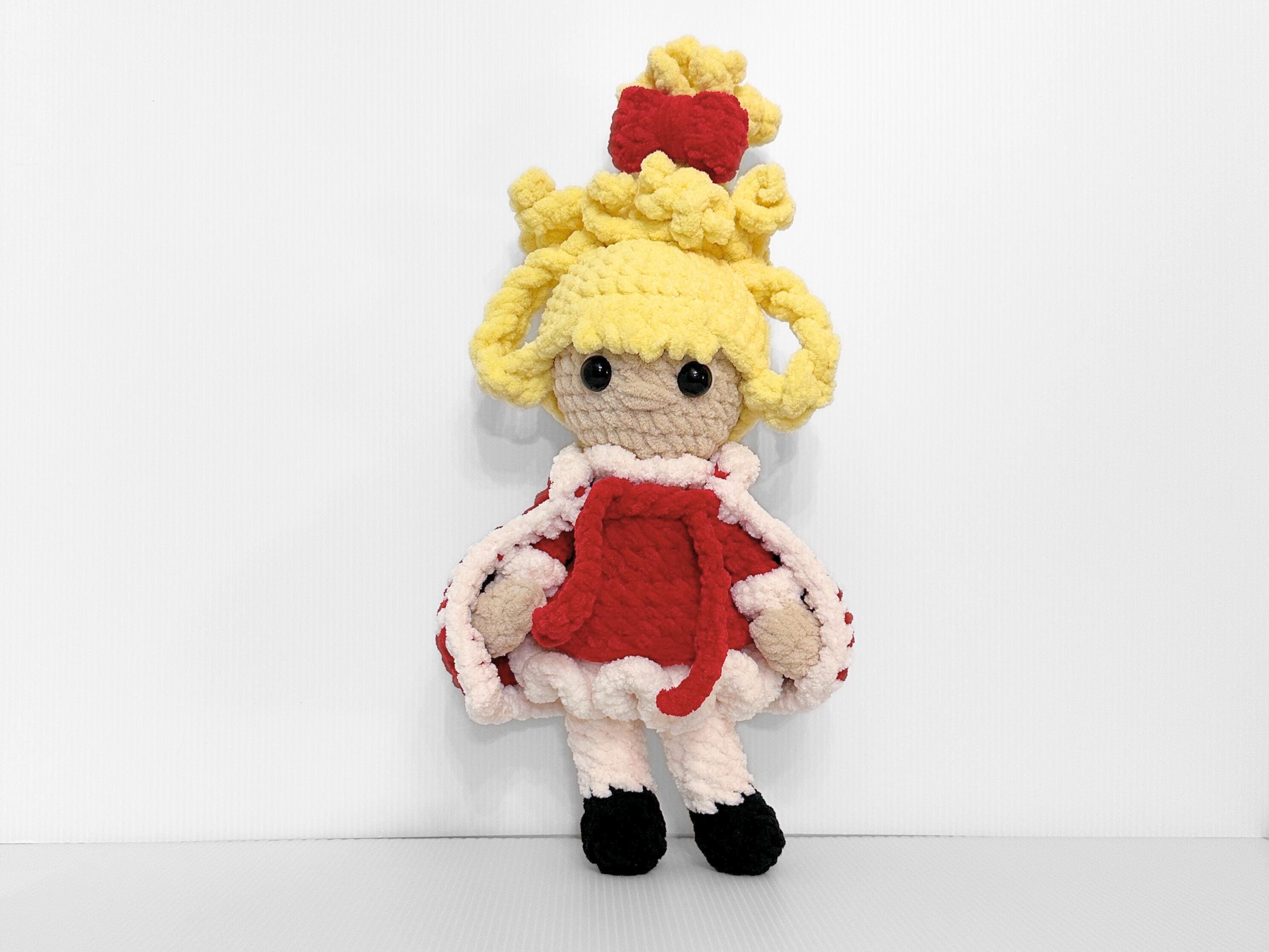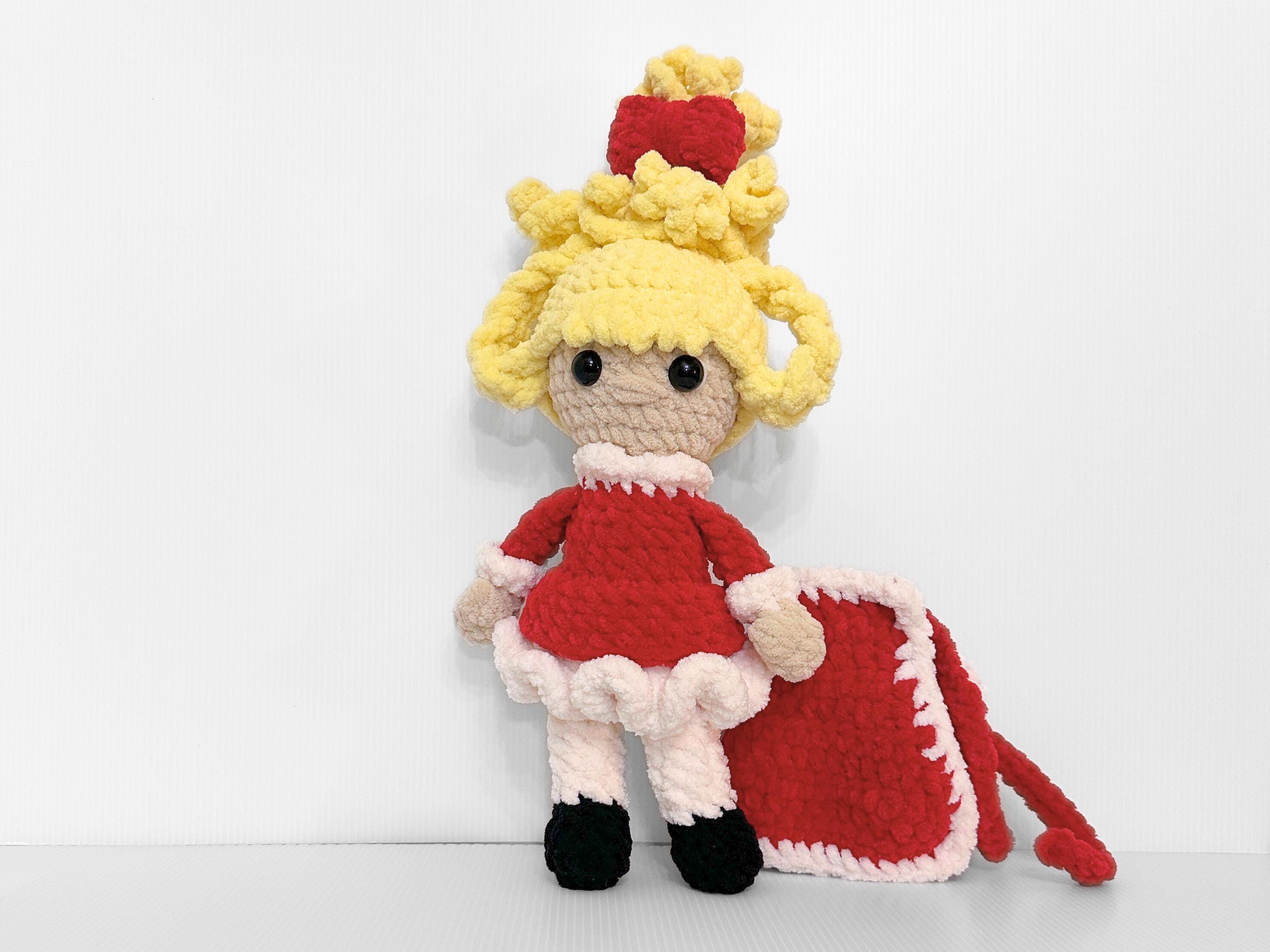 This adorable crochet Cindy Lou Who doll is the perfect gift for this holiday season! Dressed in a stunning red Christmas dress, complete with a detachable cape jacket, this doll is sure to capture the hearts of children aged 5-10. Handcrafted with love and attention to detail, this one-of-a-kind doll is made using high-quality yarn, guaranteeing its durability for endless hours of imaginative play. Whether it's a festive decoration or a beloved companion, this crochet Cindy Lou Who doll is the perfect addition to your holiday collection. Order now and let the magic of Dr. Seuss come to life in your home this Christmas!