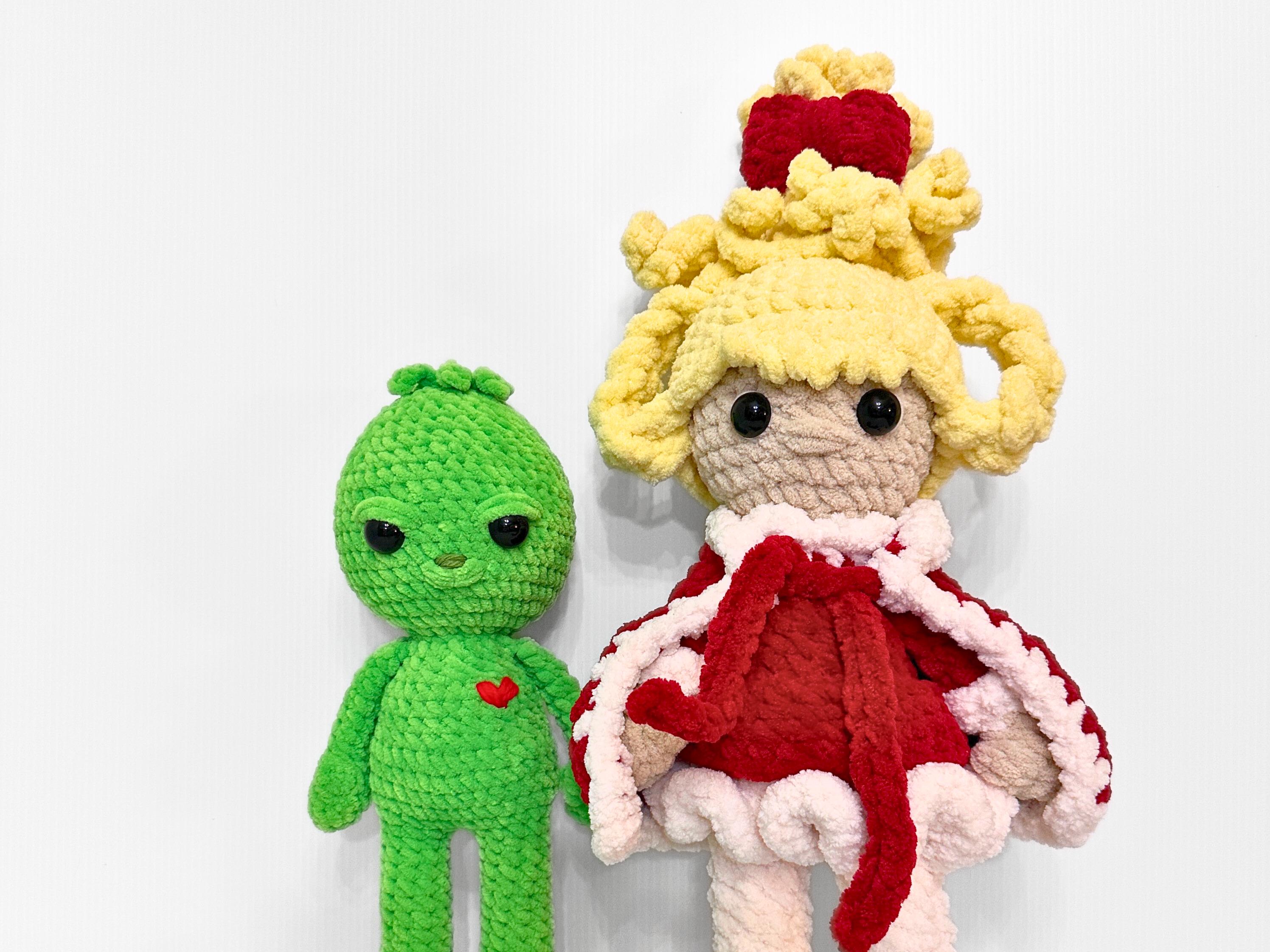 Introducing our adorable crochet Grinch doll, with his heart two sizes too big! This delightful handmade creation is ideal for children aged 5-10 who love the whimsy and mischief of the Grinch. Made with love and attention to detail, this one-of-a-kind doll is sure to capture the hearts of your little ones and bring some Christmas cheer to your home. Whether it's for imaginative play, holiday dรฉcor, or a unique gift, our crochet Grinch doll is sure to delight both kids and adults alike. Add a touch of holiday magic to your collection with this charming creation today!