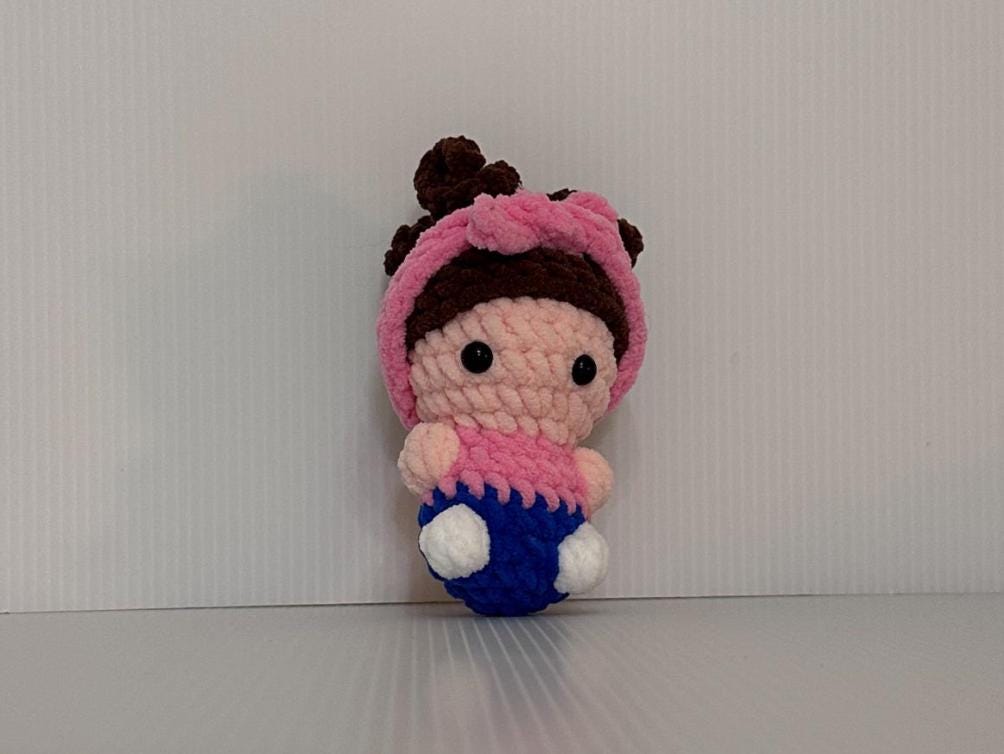 You will receive one keychain plush made from 100% polyester yarn and plastic safety eyes. This is not recommended to be given to children under the age of 3 as they can be a choking hazard.